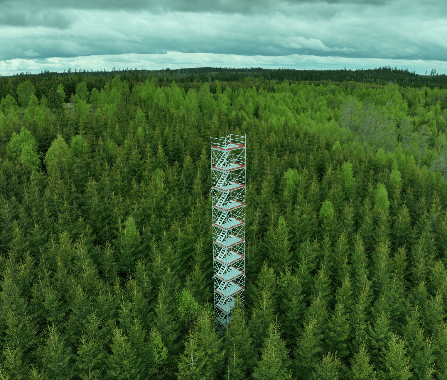 With its 25 meters, the new scaffolding tower is replacing the old mast, which had become overgrown by forest. The new tower will be much easier to access for future maintenance. Alongside the tower, both the sensors and the logger-system have been updated.